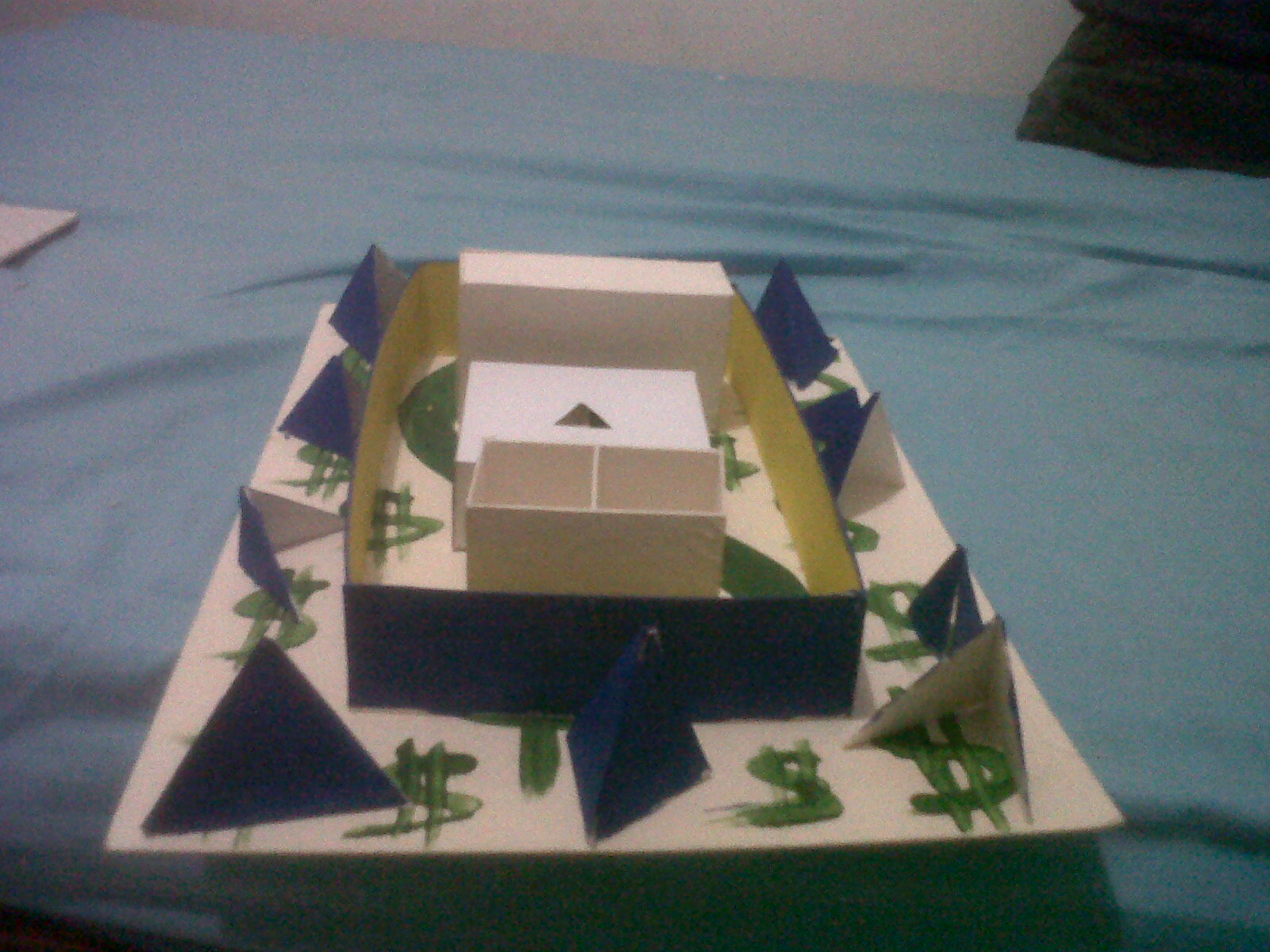 realizamos una muralla con un imperio dentro de ella. afuera con un solo color azul hicimos viviendas que significan que los burgos hicieron su propio movimiento afuera de la murall y el piso lo hicimos con el signo pesos para representar la economía.